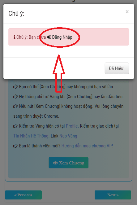 Bước 3: Khi đã đăng nhập xong, hệ thống sẽ tự chuyển đến chương bạn xem lúc đầu. Nghĩa là giao diện sẽ quay lại Bước 1 và tiếp tục ấn vào [Xem Chương].